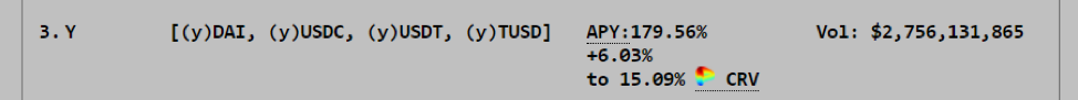 The Harvest Finance attack was executed through the Curve Finance Y pool with a flash loan. As seen below, Harvest’s near $3 billion in volume and over 170% APY raised concerns that there was irregular activity in the Curve Finance pool.