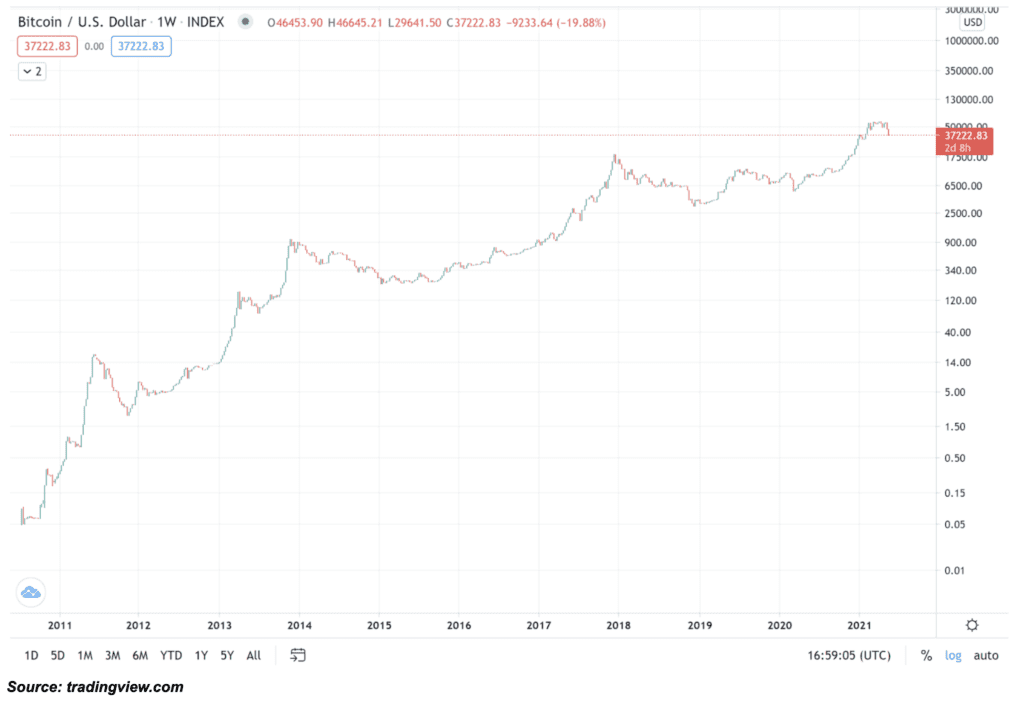 Of course, no amount of research will change the fact that Bitcoin’s price, along with the rest of the crypto asset market, was heavily impacted by the fear catalyzed by Elon’s tweet. Look no further than the Crypto Fear & Greed Index, which set its lowest low in over a year on April 16th, to confirm the significance of this wave of amplified skepticism. As humans, we are inevitably subject to the visceral responses these sudden changes in market sentiment and the volatile values of our portfolios can bring. However, we are reminded of the adage “when in doubt, zoom out”. Bitcoin is still the best performing asset of the last decade. Fundamentally, its value proposition to society remains unchanged.