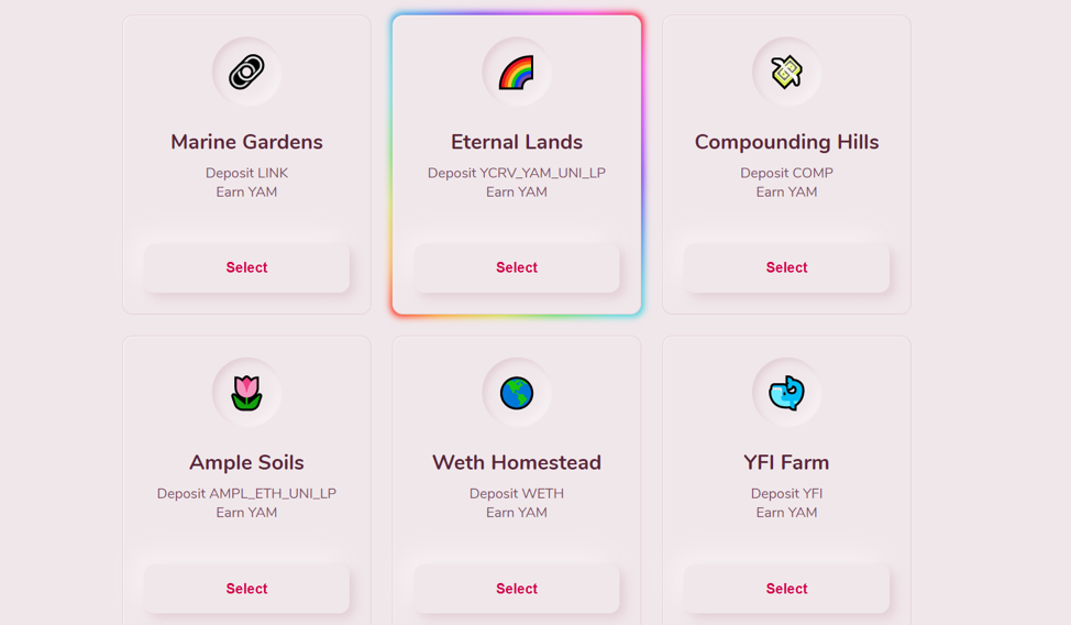 Last week was an exciting week in Defi. A new crypto token, Yam Coin, was launched that gives yield farmers APY returns above 300%. The platform allows seven cryptocurrencies to be farmed, and each experienced price rises last week. These tokens are: LEND, LINK, SNX, WETH, MKR, COMP and YFI. Below, see examples of different yield farming pools that investors can join.